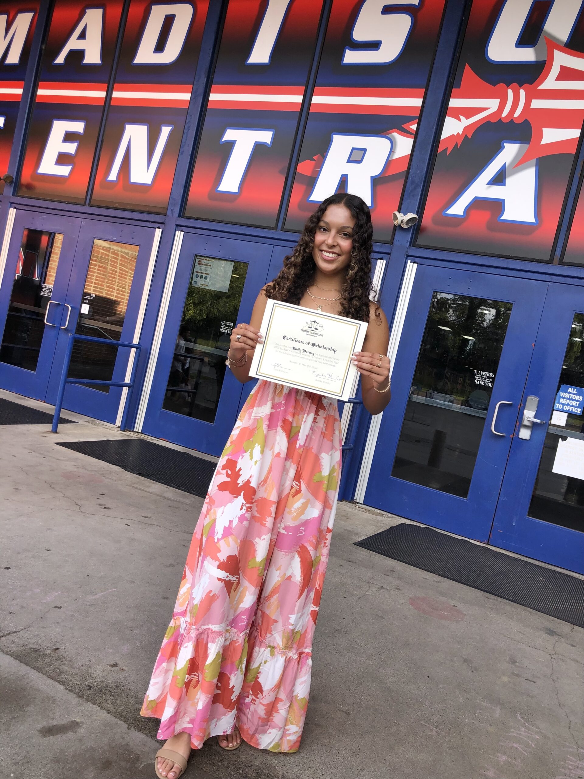 Emily Barney, a graduate of Madison Central High School, from the northern end of the county, has impressed us with her outstanding academic achievements and community involvement. Emily plans to attend the University of Kentucky where she will pursue her academic journey. Her essay topic for the scholarship application focused on the critical issue of drunk driving.